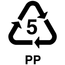 Этот пластик имеет белый цвет или полупрозрачные тона. Используется в качестве упаковки для сиропов и йогурта. Полипропилен ценится за его термоустойчивость. Когда он нагревается, то не плавится. Относительно безопасен.